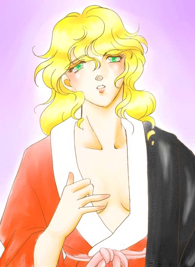 しのちゃん様からお正月気分満載の超色っぽいアンジェをいただいてしまいました〜!もう、こんなうるうるの瞳で見つめられ、胸の谷間も露に誘われちゃったら、オスカー様ならずともなけなしの理性が一瞬で沸騰蒸発してしまうのは間違いありませんね〜。こんなアンジェを見て押し倒さずにいられる人がこの世に存在するでしょうか!?(いや、いるはずがない!)しかし、アンジェはどうしちゃったんでしょうね〜やっぱり着物姿から連想される定番で、おいしい日本酒は水みたいにするするっと喉を滑り落ちてしまうので、ついつい知らずと量をすごしてしまったというところでしょうか?(笑)緋川様のアンジェがこのイラストと似たような状況に陥ってオスカー様を悶々とさせている創作がありましたが(笑・もっとも緋川様のアンジェは浴衣でしたが)オスカー様としてはこんな風にアンジェに誘ってもらえたらうはうはでしょうね〜なにせおやぢだから(爆)私もそのうちお酒に酔って自分からオスカー様を誘うアンジェの話、書いてみたいですね(笑)
