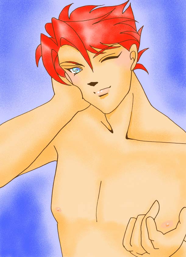 大本命でみんなの1stで(少なくとも私としのちゃん様の・笑)おおとりのオスカー様の登場です。実はこのオスカー様はしのちゃん様が一度描いてご自分でだめだしだされたものなのです。理由はこの前にUPしたクラヴィス様に色気で負けてるから(笑)オスカー1stとして納得いかん!と思われたようです(笑)で、もう一枚描いてくださったのですが、確かにそちらのイラストは色気において勝ってました。こちらのオスカー様はどっちかというとコミカルですからね。(私はこのオスカー様、すっごくらしくて好きですが)でも、私は新しいイラストと2枚並べてみたら、オスカー様の魅力がもっと引き立つんじゃないかと思ったのです。こちらのオスカー様はいうならば『俺といいことしないか?お嬢ちゃん?』といった感じで、わりとお茶目にお誘いをかけてくださってる。で、2枚目はそのお誘いの事後で、『もう、どうしようもないくらい本気だぜ』ってイメージを受けまして、これはもうイラスト自体がドラマになってる〜!と思いまして、その線でモノローグも考えました。おおとり様ですから、オスカー様だけは2枚あってもいいでしょ?というわけで、これを見た後はぜひぜひ「After]のほうもご覧になってみてくださいませ〜。
