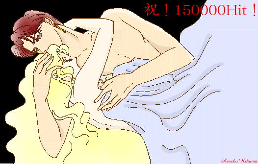 当サイトがめでたく15万ヒットを迎えた時に緋川亜紗子様が、くださったお祝いイラストです。 しかも、15万HITが出たその当日にいただけまして、すっごくびっくりしました。これこそ嬉しい驚きという感じでした。 緋川さま、ありがとうございますぅ。いつもいただくばかりで、ほんとに申し訳ないと思ってます。